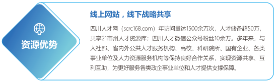 四川招聘网是四川全盛人才官方招聘求职网站,是西南地区极富影响力的人才网站之一 。每年为近千家用人单位和近万人才提供诚信可靠、专业高效的招聘求职服务。